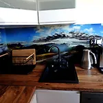 山のを見渡すテラスの客室で,バルコニ-,ソファ とコ-ヒ-/紅茶メ-カ-が備わっています. 台所と山景色を眺めることができます.